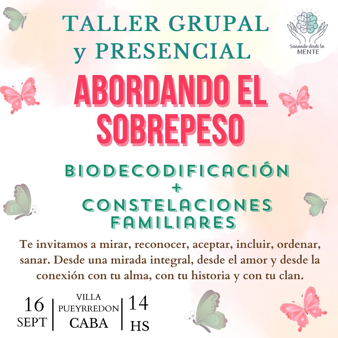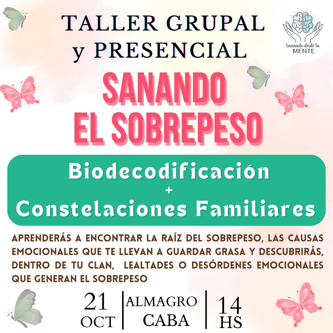 TALLER FINALIZADODECODIFICANDO y CONSTELANDO el SOBREPESOFecha: 02/12/2023Lugar: Del Viso, Pilar - Bs AsHorario: de 14 a 18:30 hs+ MAS INFO